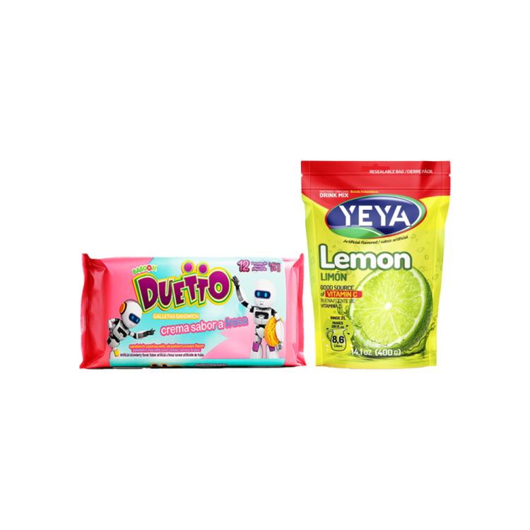 Combo de refresco instantáneo sabor limón + galletas dulces rellenas de fresa