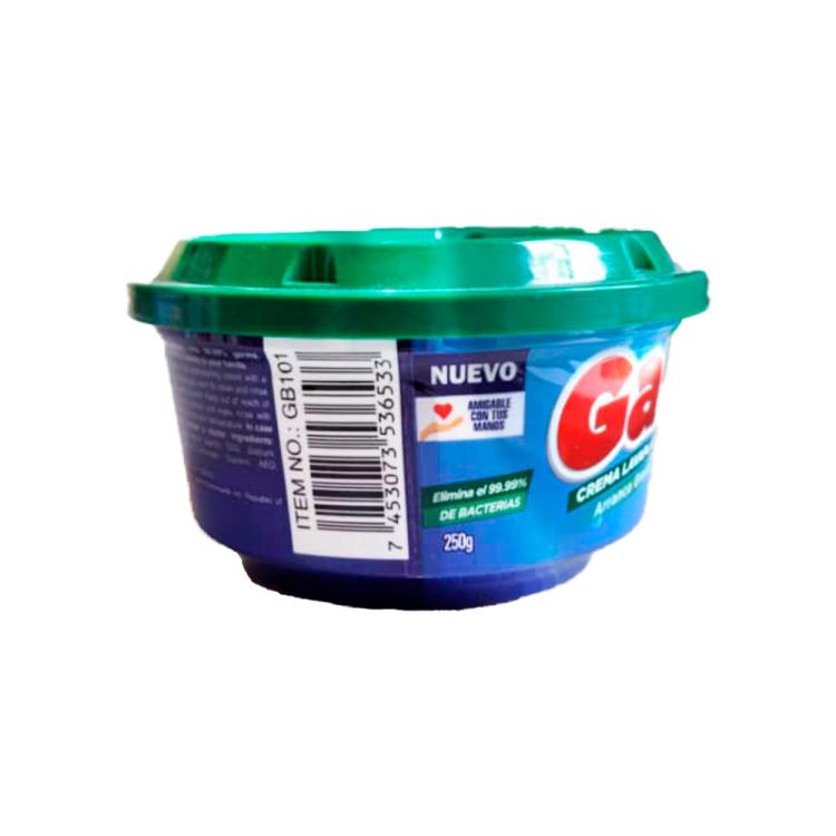 Ingredientes: Agentes tensioactivos orgánicos, SDS, sodio, sulfato, carbonato de calcio, glicerina, AEO, abrasivos. Arranca el 100% de la grasa, elimina el 99.99% de gérmenes y disminuye los malos olores.