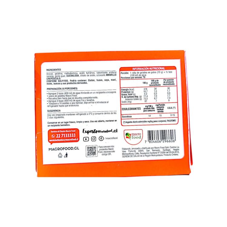 Gelatina sabor naranja Macro Food (100 g / 3.5 oz)