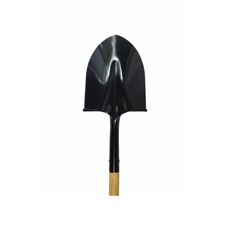 Pala de punta redonda con cabo de madera y maneral tipo Y. Herramienta empleada en la jardinería para remover la tierra y transplantar.