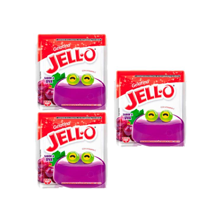 Polvo para preparar gelatina fortificada con Vit C sabor a uva Jell-O (3 x 25 g)